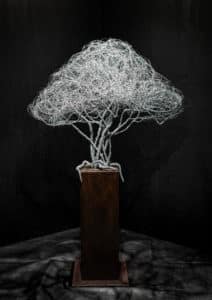 Die Drahtbaum Skulptur „Nordlicht“ ist ein monumentales Kunstobjekt und ein ausdrucksstarkes Stielecht-Statement. Mit einer Gesamthöhe von ca. 1.35 m und einer Baumkrone von rund 1 Meter Durchmesser entfaltet diese Drahtbaum Skulptur eine eindrucksvolle Präsenz im Raum.