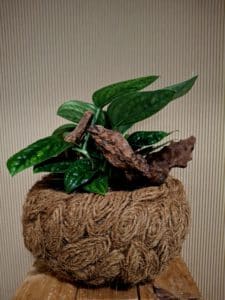 Die Epipremnum Pinnatum im Kokusschnur-Korb ist ein echtes Stielecht-Statement: extravagant, edel und von A bis Z handgemacht. Diese aussergewöhnliche Zimmerpflanze wird von einem kunstvoll gefertigten Korb aus natürlicher Kokusschnur getragen, der in aufwendiger **japanischer Wickeltechnik („Japanisches Auge“) **von Hand gearbeitet wurde. Kein Gefäss von der Stange – jedes Stück ist ein Unikat mit Charakter.