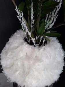 Dieses aussergewöhnliche Arrangement verbindet die klare, kräftige Form der Zamioculcas mit einer weichen, textilen Anmutung. Der Topf wird sorgfältig mit feinem Sizoweb umwickelt und anschliessend passgenau in eine Strohkranzform eingesetzt.